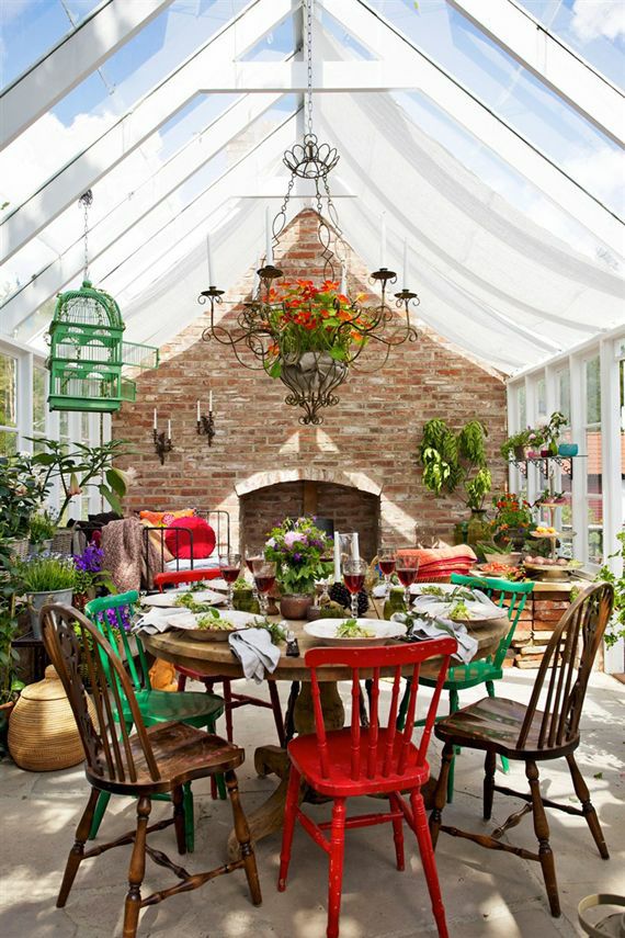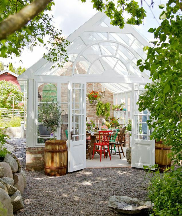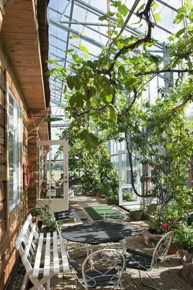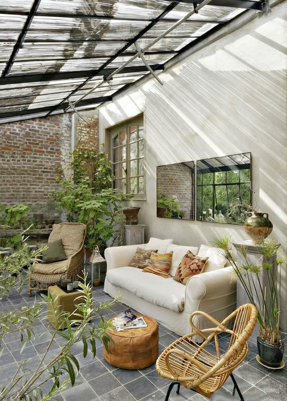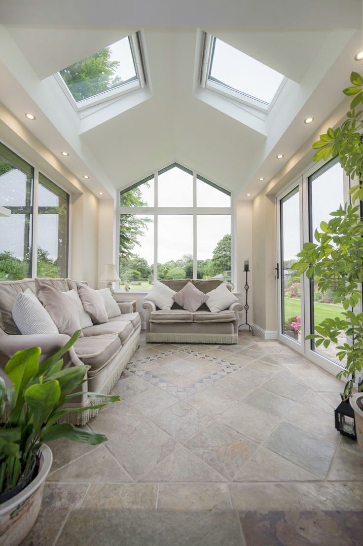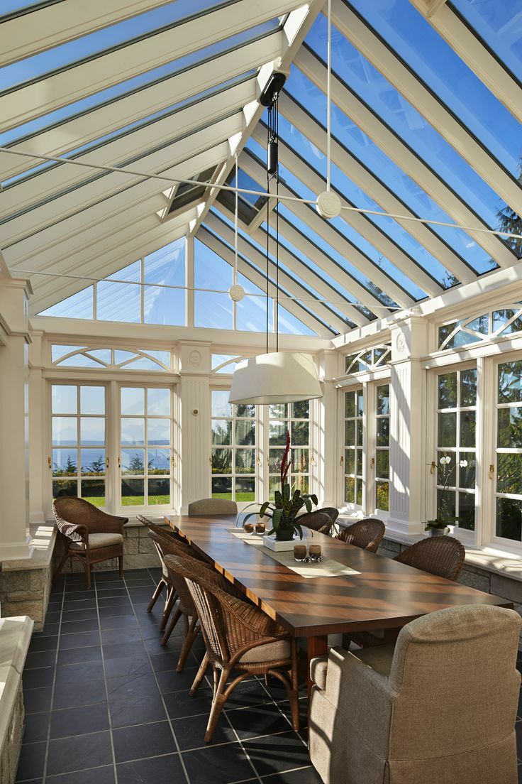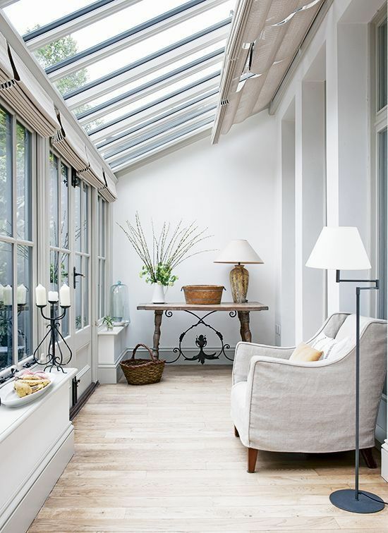 阳光房的顶部安天窗,这样配合窗户使用,产生对流,热气能更好的排出室内。